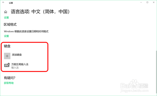 我们可以看到 说话选项:中文(简体,中国)窗口中的【键盘】项下只保留了【全能五笔输入法】,退出设置窗口。