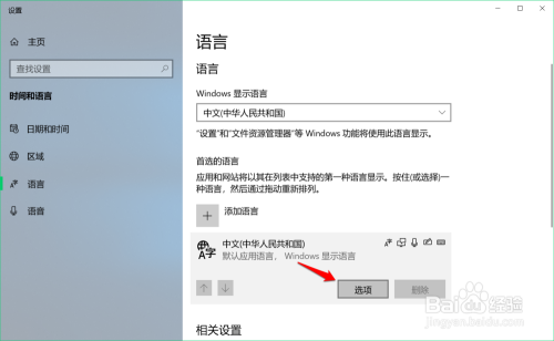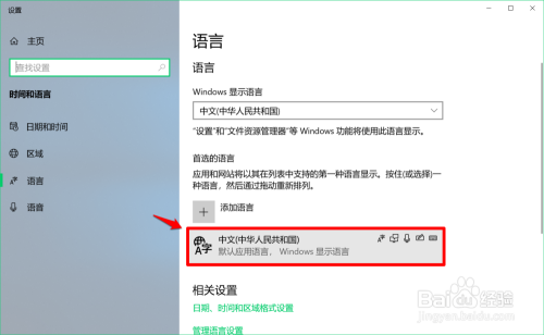 在打开的说话设置窗口中,我们点击【添加说话】下的【中文(中华人平易近共和国)】;