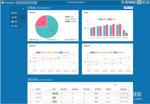 项目列表展示了企业中所有项目标关头信息,包罗进度、状况、需乞降缺陷数目、人员投入、关头负责人等,如下图所示: