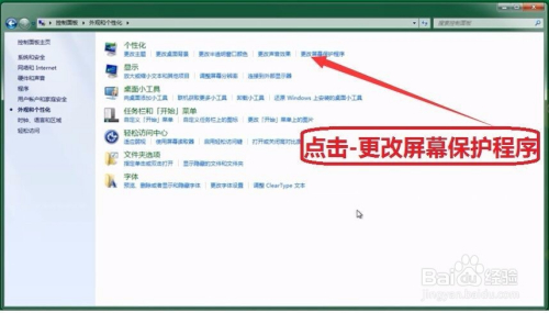 点击【外不雅和个性化】;然后点击【个性化】选项卡中的【更改屏幕庇护法式】;