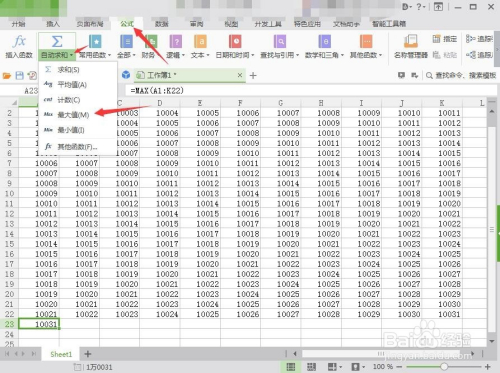 不习惯利用手动输入函数,就在菜单栏中选择利用,点击公式选择最年夜值。