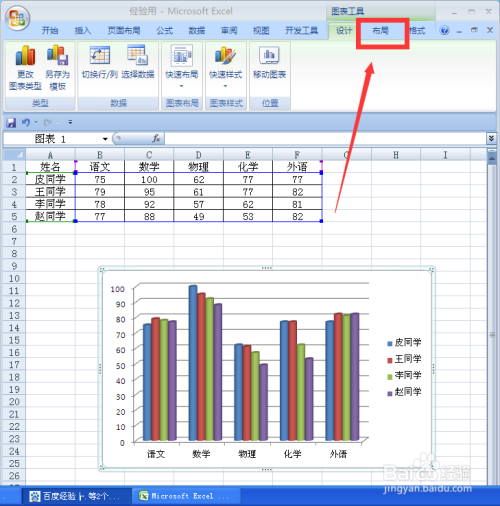 选中要处置的图表,在菜单栏找到“结构”单击