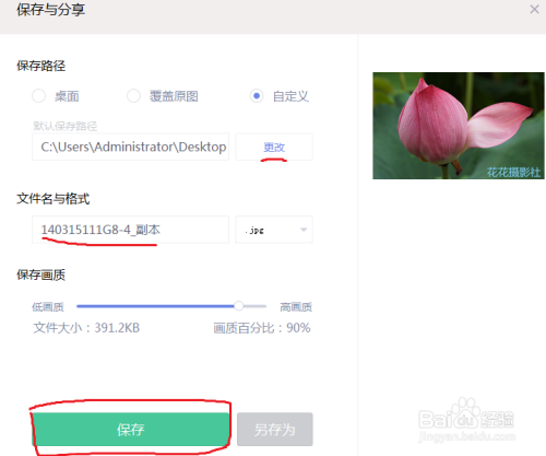 这时弹出一个保留对话框,选择保留路径和定名图片,然后点击”保留“按钮,这时添加水印的图片就保留当作功。