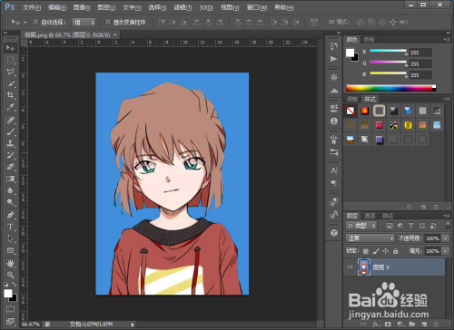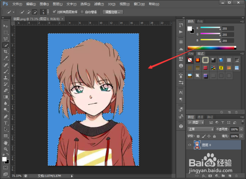 利用ps软件打开要更改布景颜色的照片。