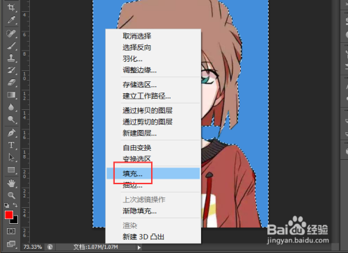右键单击选框,点击菜单中的“填充”。