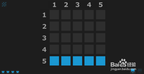 为了让大师尽快的领会这条目游戏法则,我先用难度低的来演示。格子左侧的数字(这里用x代表):这一行有持续x个格子需要点亮。好比图中左侧第的5代表这一行有5个格子需要点亮。点击格子便是点亮。