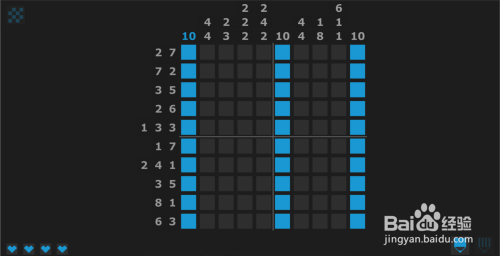 接下来,让我们看看中级难度的。一般先点亮轻易确定格子位子的格子,好比数字等于行或列数的(此图是10)。