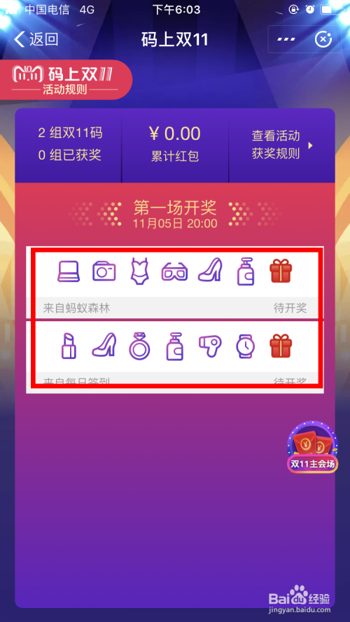 进入活动页面后,可以看到该活动一共分为两场,第一场的开奖时候为11月5日20:00,第二场的开奖时候为11月10日20:00。先签到攒码。