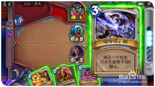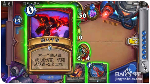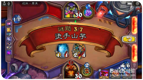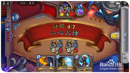 打开手中“寒冰箭”(造当作3点危险),覆灭对方嘲讽结果的“铁鬃灰熊”;接着打出具有灭亡时抽取一张牌结果的"血法师萨尔诺斯";再用英雄“火焰冲击”技术,进犯3血侍从“古拉巴什狞恶者”,减1点生命,增3点进犯力。再打出“禁忌烈焰”,再次对2血的“古拉巴什狞恶者”造当作1点危险,增添3点进犯力。然后别离用2个“古拉巴什狞恶者”侍从,进犯敌方英雄,过关。