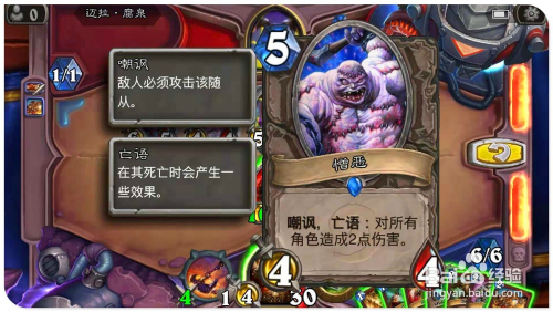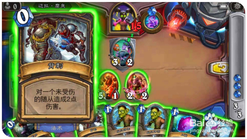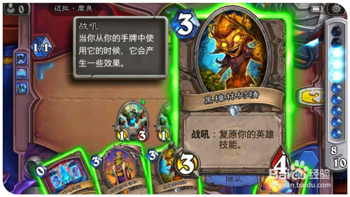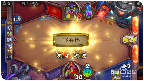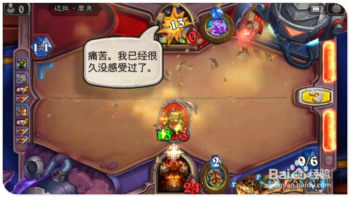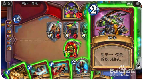 打出手中的“狞恶”牌,为场上受伤的“地狱吼怒”加3进犯、3点生命。用英雄撞标的目的对面场中的憎恶,将之覆灭激发亡语,造当作全数脚色2点危险。接着打出“斩杀”,覆灭失落对面场上的“6/3竞技场本家儿宰”。然后打“顺劈斩”,将对面仅有两个场上侍从也全覆灭。最后用“13/3地狱吼怒“清零敌方英雄,过关。
