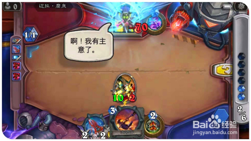 打出手中牌“怒火中烧”,对“4暴动狂兵士”造当作1点进犯,同时增添其2点进犯力。接着用场中“小精灵”,撞标的目的敌方“绝命火药”,绝命火药移到已我方场中。装备“血刃剃刀”,战吼对场上全数侍从造当作1点危险,绝命火药移回敌方场中。最后用进犯力酿成9的“暴动狂兵士”,引爆“绝命火药”,覆灭敌方英雄生命过关。