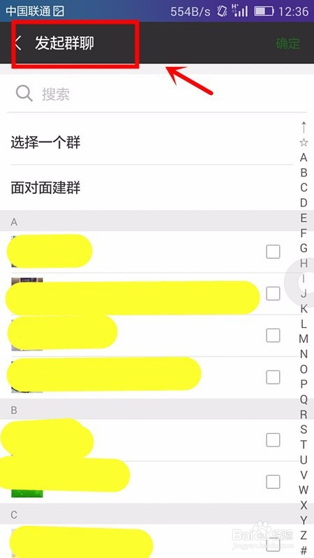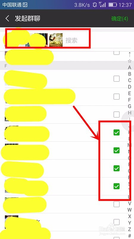 我们这时将要进行群聊的老友选上,即在老友后边的小正方形打上勾;