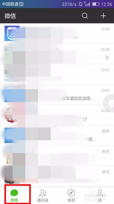 这时在打开的微信页面中可以看到我们比来的聊笔记录;