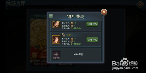 通俗玩家天天一共可以调派两名脚色进行营地的镇守。镇守的时候越长获得的奖励就会越多!