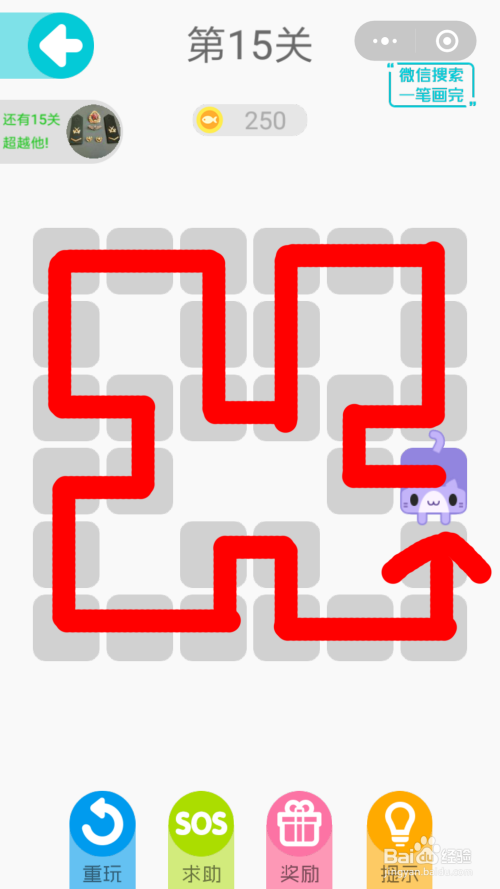 第15关:先标的目的左一格;标的目的上一格;标的目的右一格;标的目的上两格;标的目的左两格;标的目的下两格;标的目的左一格;标的目的上两格;标的目的左两格;标的目的下两格;标的目的右一格;标的目的下一格;标的目的左一格;标的目的下两格;标的目的右两格;标的目的上一格;标的目的右一格;标的目的下一格;标的目的右两格;标的目的上一格。第15关顺遂过关。