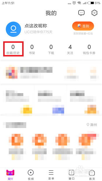 找到汗青浏览记实的另一个方式就是在UC浏览器的首页中点击右下角【我的】选项。