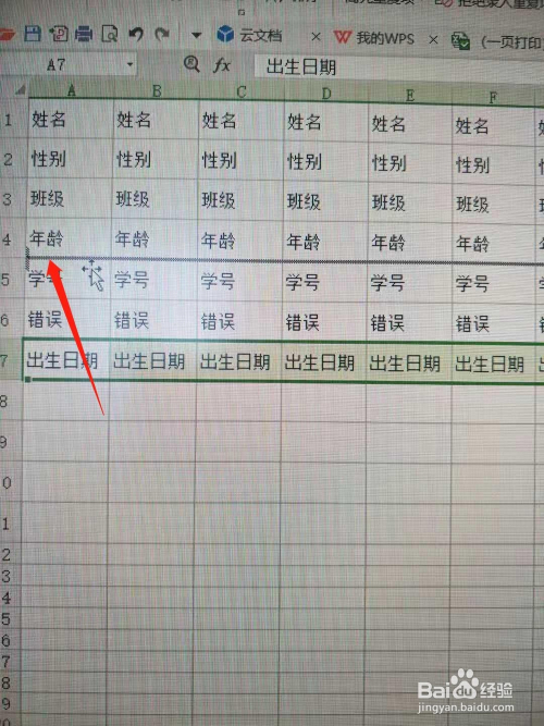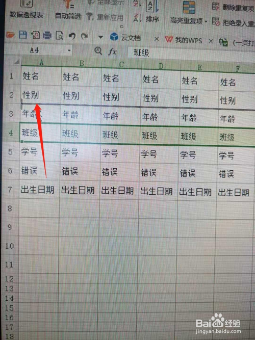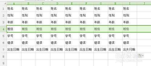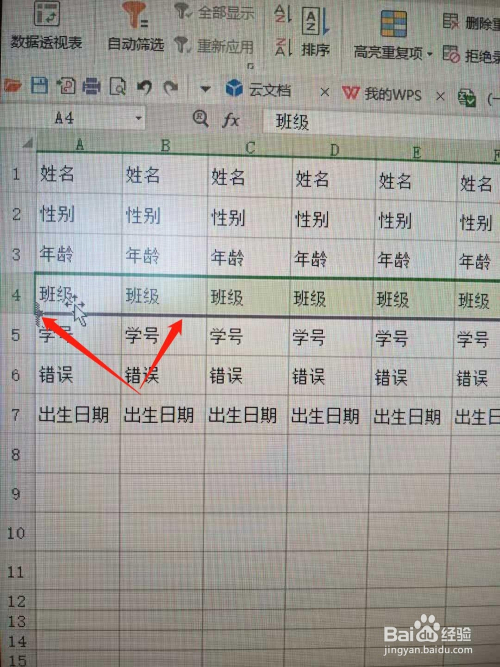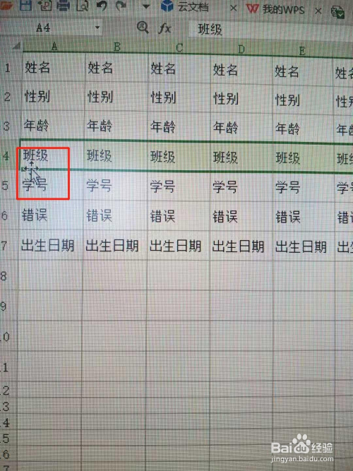 班级和春秋两行内容错误,应该对换,那么用鼠标选中班级行,并按住Shift键