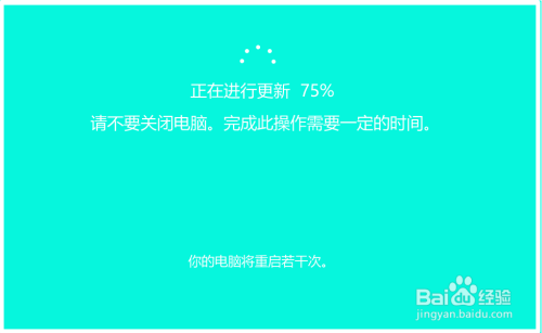 第三步:电脑第 3 次从头启动今后,更新进级从75% ~ 100%,电脑第 4 次重启;