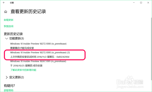 注重:安装Windows 10 Insider Preview 18272.1000 (rs_prerelease)版系统,也会呈现安装掉败的现象,系统也会继续主动更新安装,本次更新进级也是第四次安装才当作功,所以,建议考虑系统不变性的用户请不要急于进级。