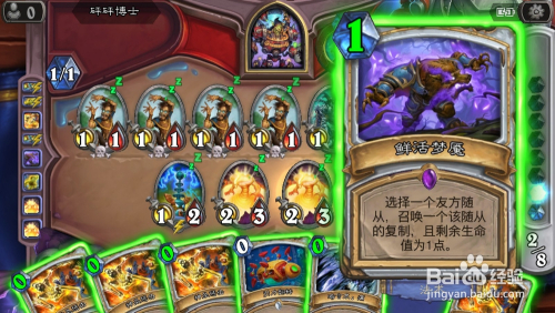 然后用手中的2张鲜活梦魇别离复制光照元素和格尔宾的线圈,然后第三次用神圣惩击覆灭仅有的一个尝试体,获得2张鲜活梦魇和1张神圣惩击手牌;