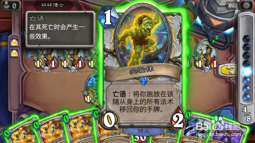 然后打出尝试体,该侍从灭亡时,会将所有感化在它身上的神通牌移脱手中。