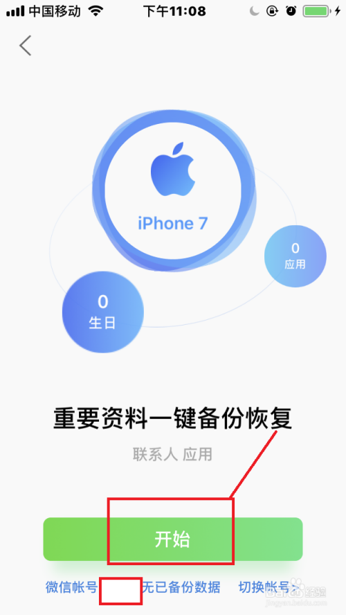 点击年夜按钮进行通信录及应用同步,点击“起头”——“下一步”,进行连人人备份。