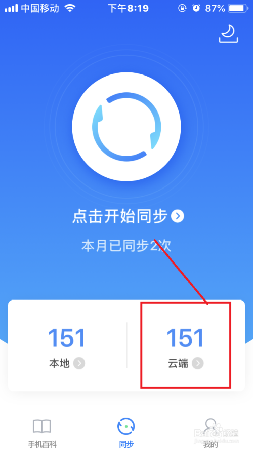 - 进入QQ同步助手,点击同步按钮进行云端备份同步,点击“月光宝盒”可以还原通信录。