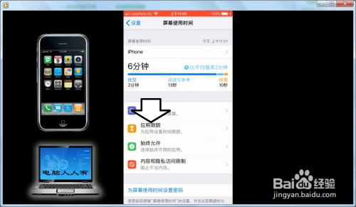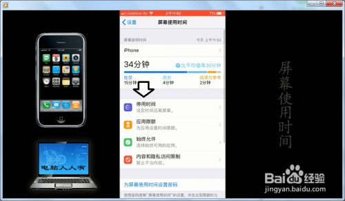 iPhone(苹果)手机更新之后,出了一个屏幕利用时候,为的是可以节制孩子的利用时候。