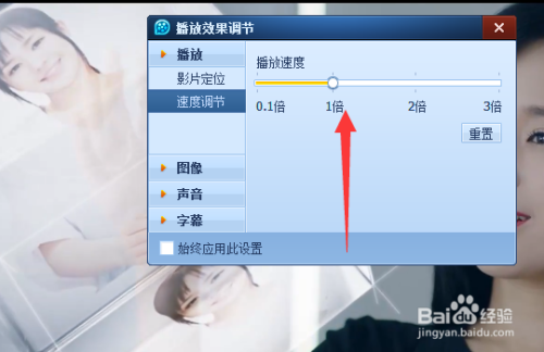 单击速度调节后,会呈现一个窗口,在这里就可以调节播放速度了。
