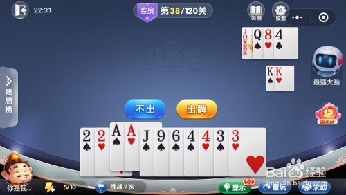 最壮大脑打出一张4,我打出一张2,接着打出一张J一张6就过关了。