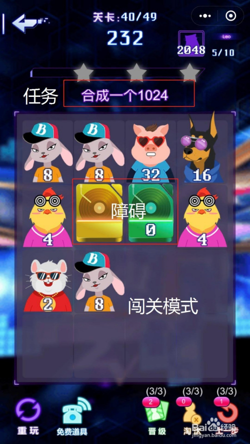 游戏内还有【闯关模式】,分歧关卡会有不消的使命,呈现分歧状况的障碍,难度较年夜,矫捷性较强,能通关的都是2048顶级高手。秘笈教授于此,获得高分仍是需要多多操练并矫捷应用,究竟结果师傅领进门,修行看小我,实践是查验真理的独一尺度。赶紧和伴侣一路挑战下这条目【动感2048】吧,能通关的高手私我交流