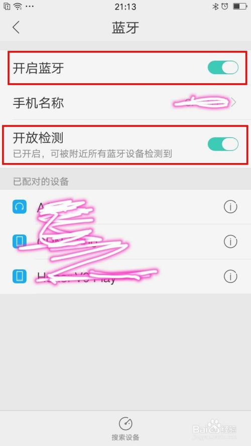 第三步,开启手机蓝牙:打开手机设置——选择蓝牙——开启蓝牙——而且开启:开放检测,如许才会被搜刮检测到。