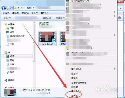 若是要查看多个视频文件的时长,可以同时选中它们,右击选择属性选项。