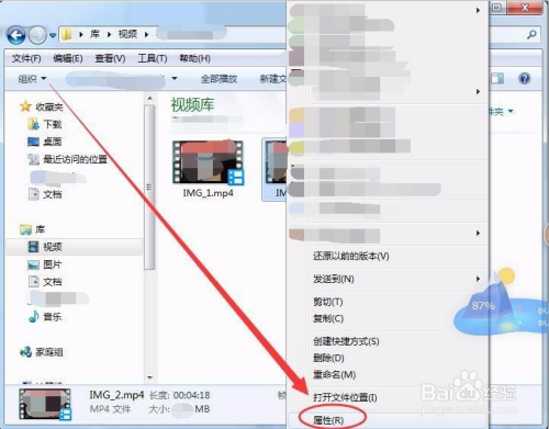 在需查看的视频文件上右击,选择属性选项。