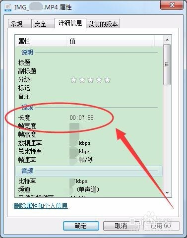具体信息选项卡的长度选项中,就显示了查看视频的时候长度。