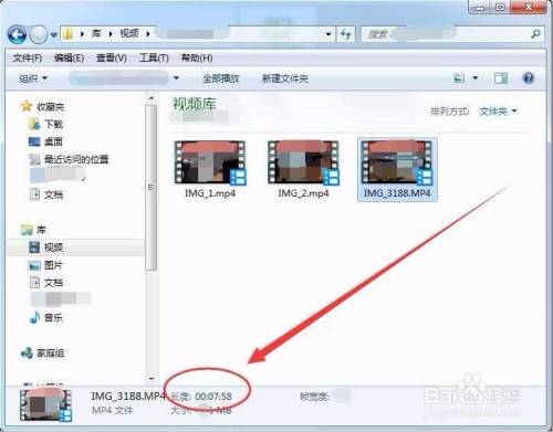 资本办理器的状况栏中,就显示了该视频文件的时候长度,本例视频时长为7分58秒。