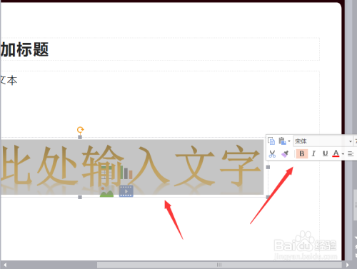 然后点击即可,后面ppt的界面就会呈现字符框,这里你可以编写字体的内容,以及更改一下字体大小