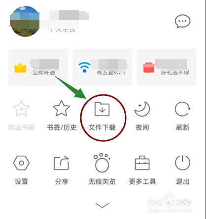 点击今后会弹出一个菜单,在这个菜单里面有一项是文件下载,点击文件下载。