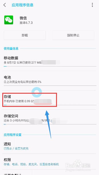 进人微信设置界面,点击存储,如下图所示