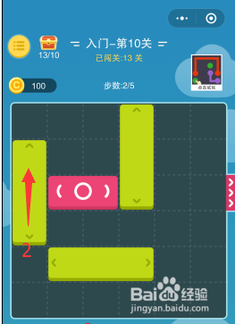 进入第十关卡,先标的目的右移动图中的红色方块,再标的目的上移动最左边的竖排方块,最后再把右边挡路的竖排方块,拖到底部,即可(在五步内)竣事游戏!