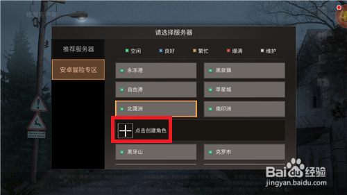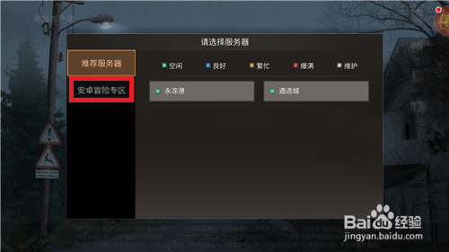 打开办事器列表后会在左边呈现两个选项,一个是【保举办事器】一个是【安卓冒险办事器】,这里大师点击【安卓冒险办事器】。