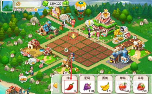 在这些镰刀上点击一下鼠标左键,鄙人方呈现零丁的一把镰刀,暗示此时可以采摘辣椒了;