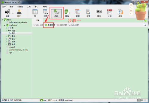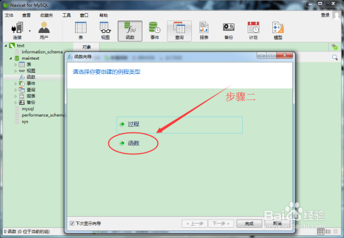 MySQL自界说函数建立步调二:点击“新建函数”今后,继续点击弹窗中的“函数”。