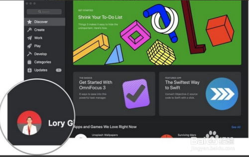 2、单击Mac App Store窗口右下角的小我资料图片。