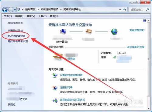收集和共享中间窗口中,选择更改适配器设置选项。