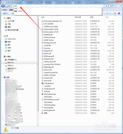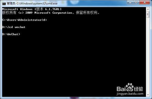 dos窗口下,找到本身安装微信的路径(注重这个路径若是找不到的话可以右键桌面微信的图标,打开文件位置,此时显示的路径就是微信的法式的安装路径),例如我的在d盘的wechat文件下,可按照图中操作进行