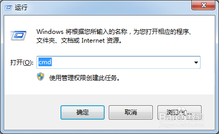 打开windows操作系统的dos号令窗口(快捷键win+R键);输入cmd,点击回车