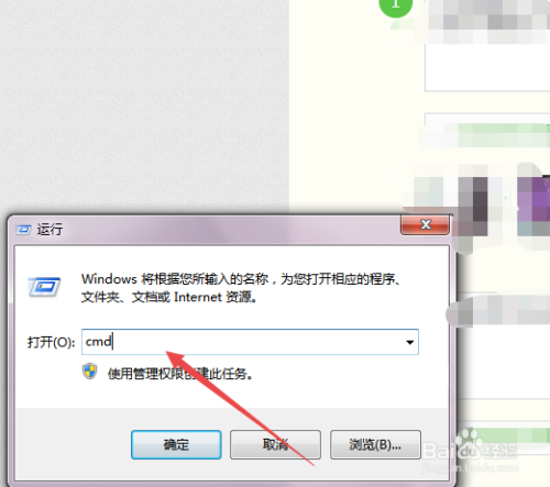 然后在弹出的运行小窗口中输入 cmd 回车。