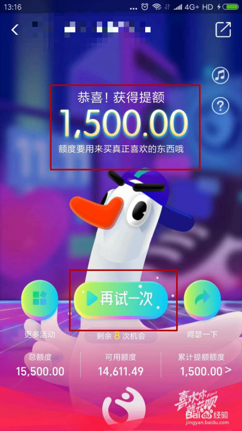 当然并不是每次都能当作功提额的,也有可能高度不敷不克不及提额。不外总共有10次游戏机遇,加油。