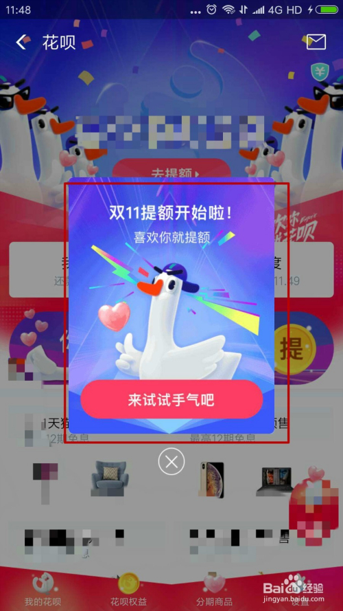进入花呗界面后系统就会弹出提额活动的海报,我们点击可以直接进入活动页面。